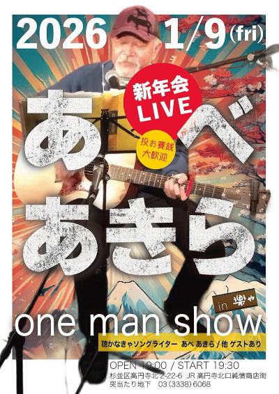 あべあきら 新年会ワンマンライブ! *お客様、飛び入り参加あり |
