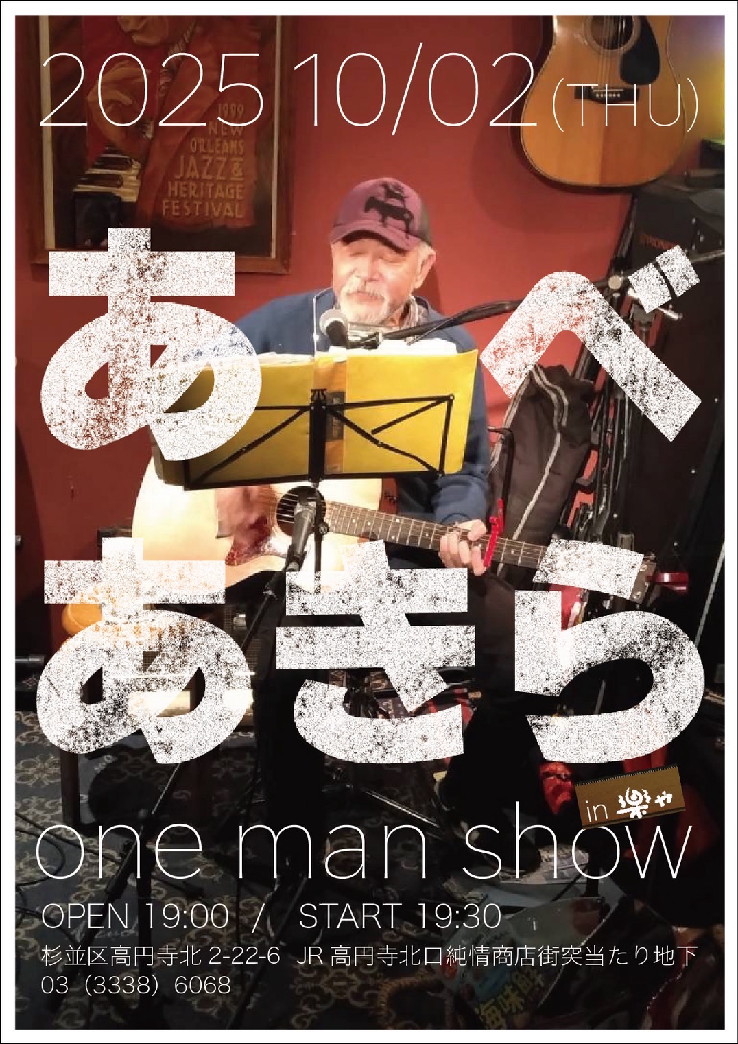 あべあきらライブ@nobiya 長崎県諫早市高城町 オープン:19:00 スタート:20:00
