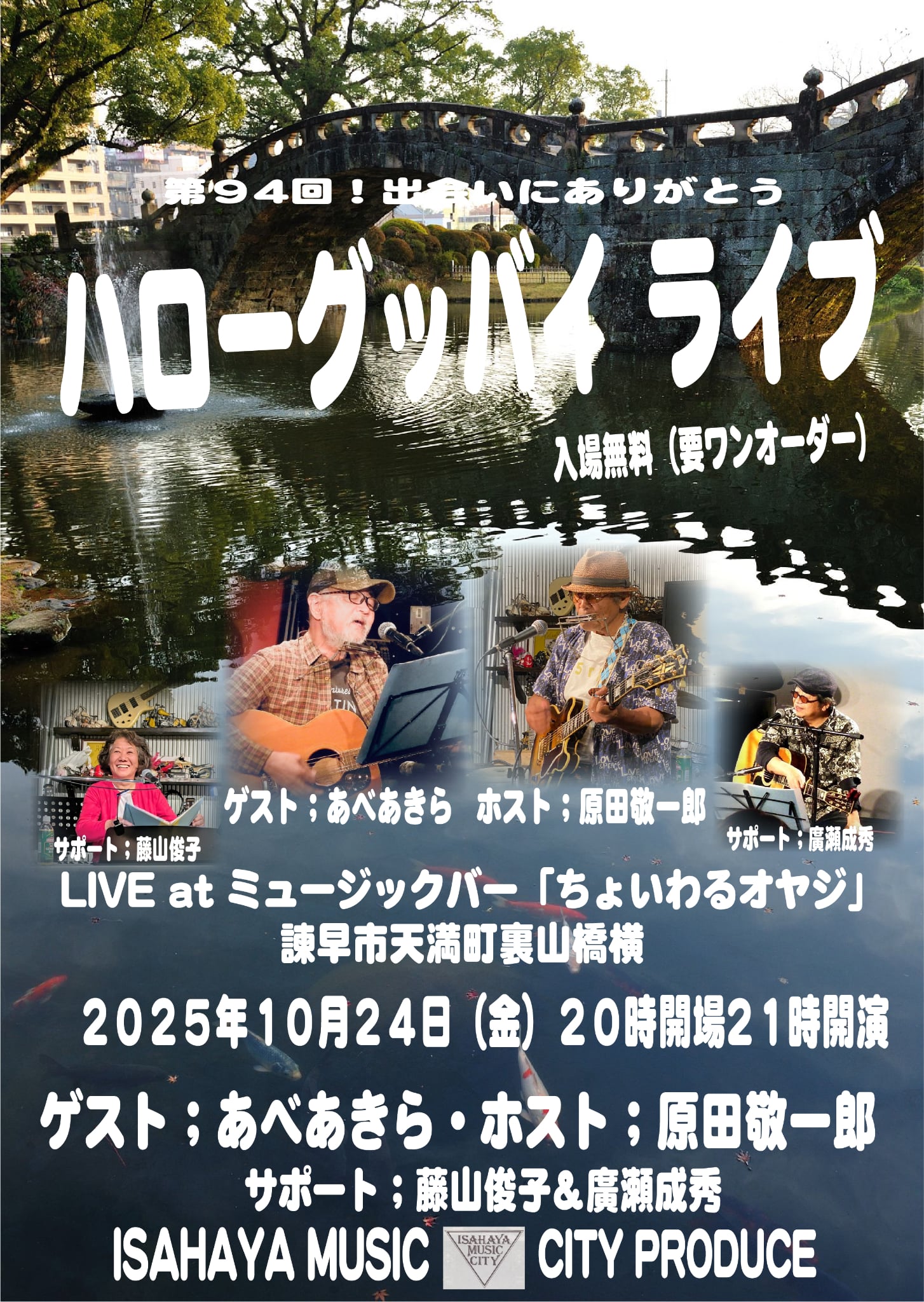 ハローグッバイLIVE!@Barちょいわるおやじ 長崎県諫早市天満町 オープン:19:00 スタート:20:00