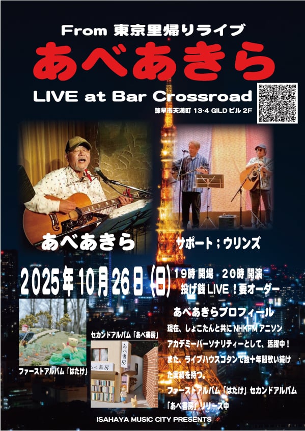 あべあきらライブ@Crossroad 長崎県諫早市天満町 オープン:19:00 スタート:20:00
